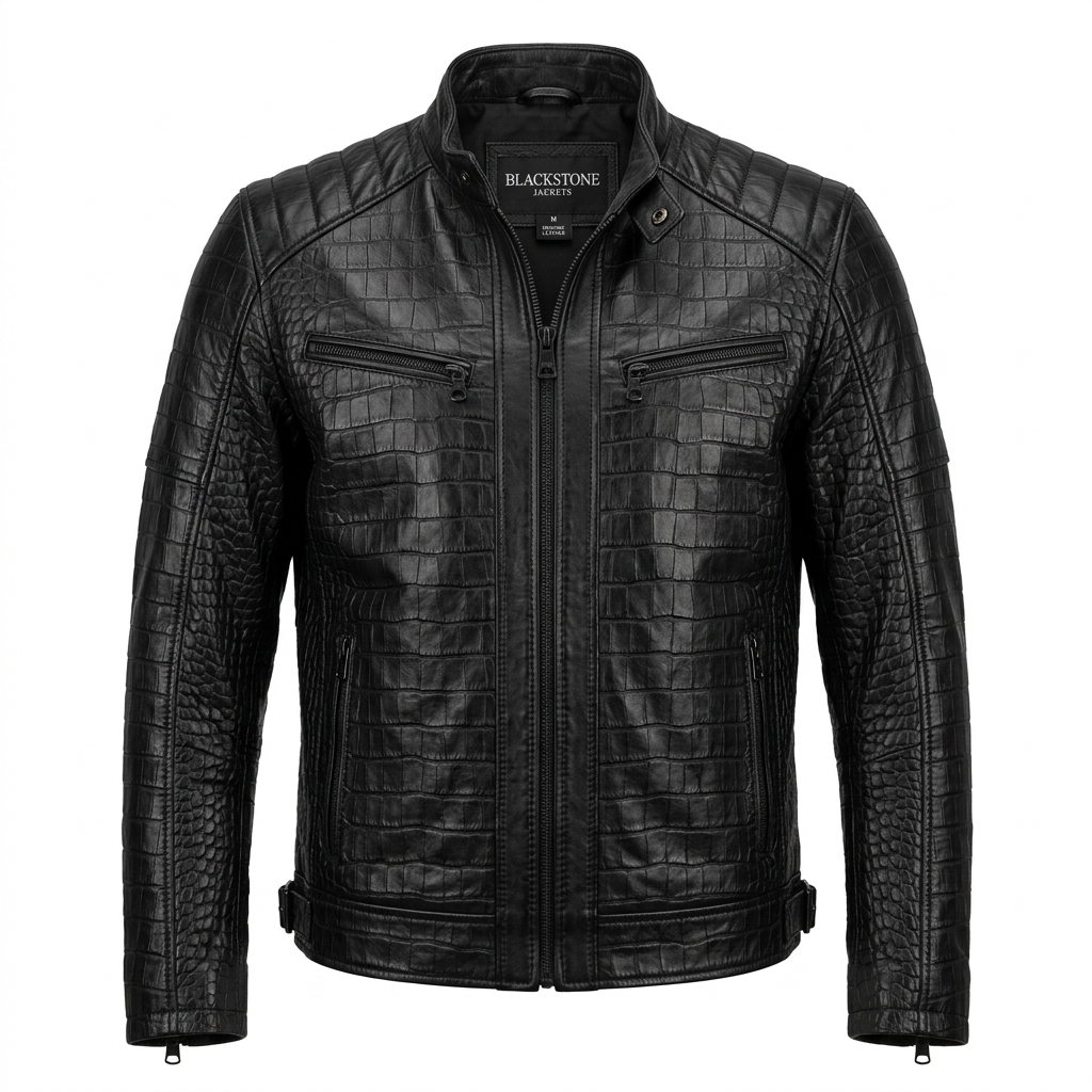 Men’s Premium Black Crocodile Embossed Leather Jacket – Blackstone Jackets