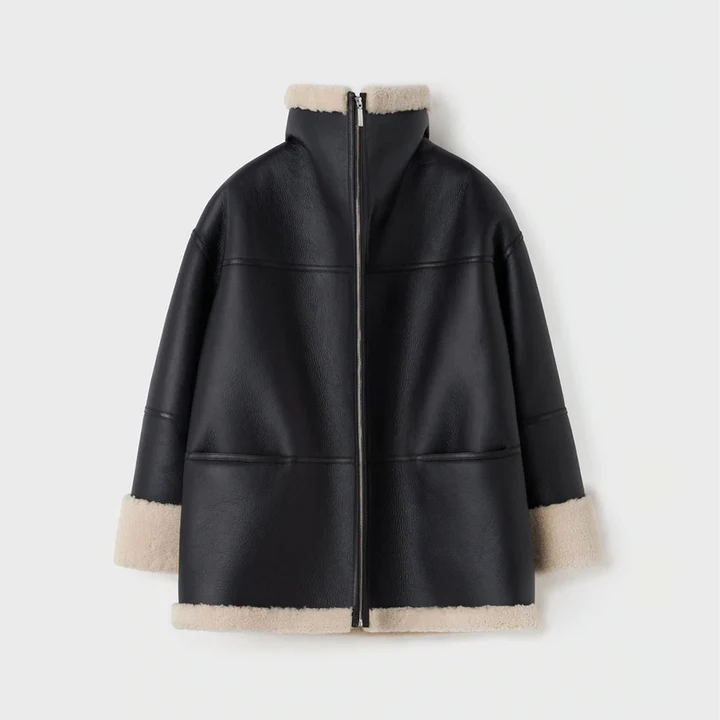 - Contrasting Off-White Shearling: Contrasting shearling adds visual interest and texture.